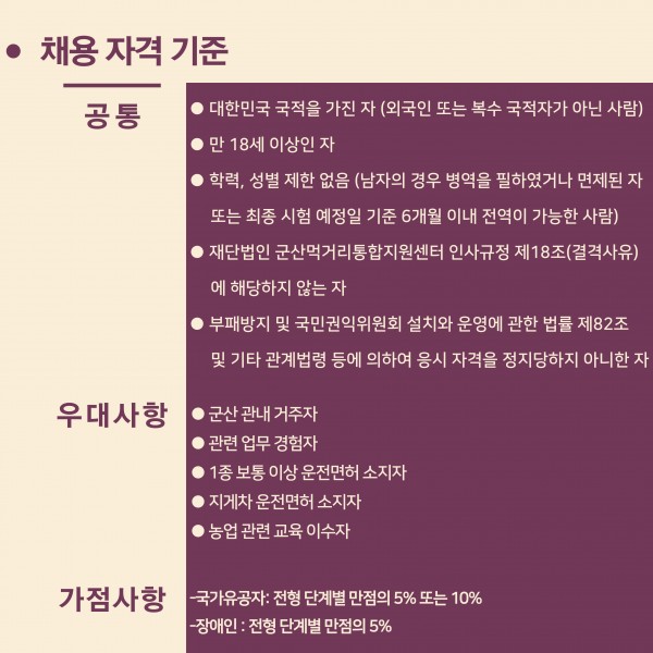 재단법인군산먹거리통합지원센터, 신규 직원 채용 공고